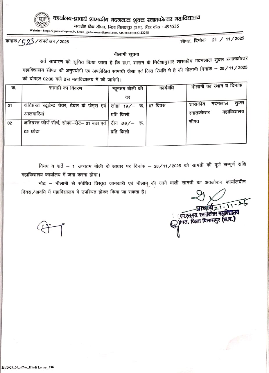 नीलामी सुचना 21.11.2025 November 21, 2025November 21, 2025 Principal Principal नीलामी सुचना 21.11.2025